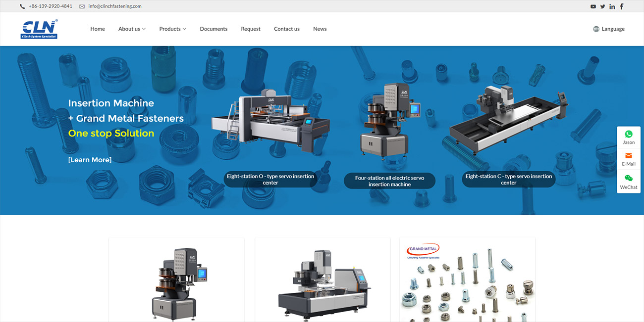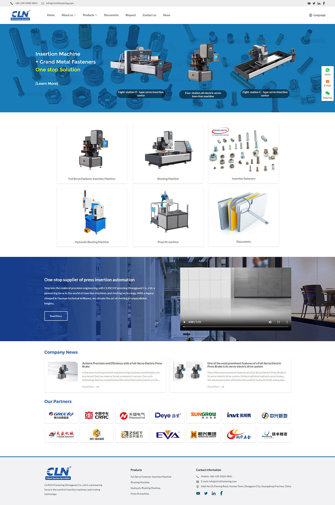 服務內容:外貿英文網站設計、機械設備網站設計 CLINCH Fastening (Dongguan) Co., Ltd is a pioneering force in the world of insertion machines and riveting technology. Step into the realm of precision engineering with Clinch Fastening (Dongguan) Co., Ltd, a pioneering force in the world of insertion machines and riveting technology. With a legacy steeped in German technical brilliance, we elevate the art of riveting to unparalleled heights.