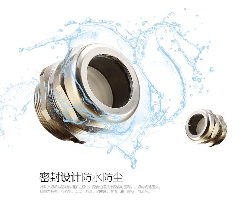 使用方法: 金屬電纜防水接頭是電纜的配套產品,接頭可將電纜鎖緊,另一端可接入設備箱體上,也可以根據選用螺紋接入進出口為內螺紋的電動設備上。